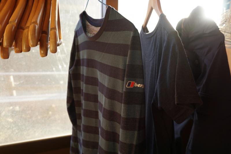 上:スキンメッシュ半袖 ウール長袖(200ウェイト) 休憩時はナノパフ レインウェア