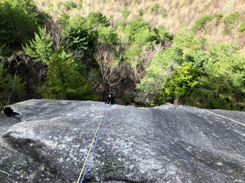 ダルマ型の2峰南壁フェースを登る小川山マルチピッチの大人気ルート。