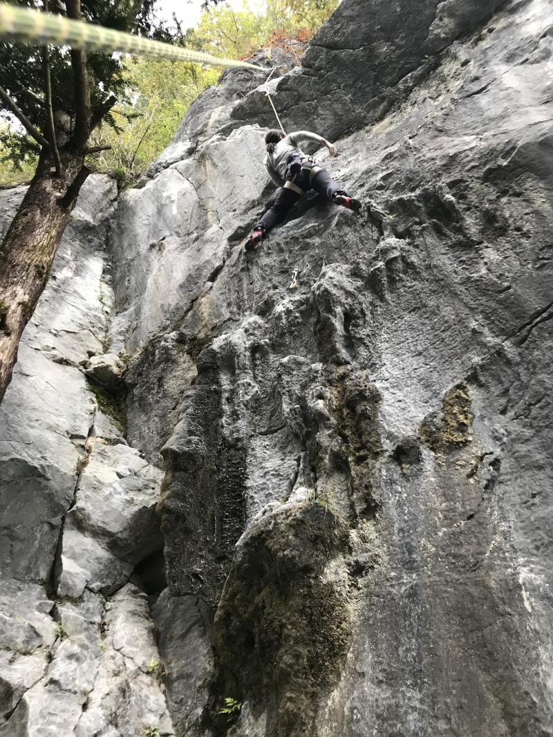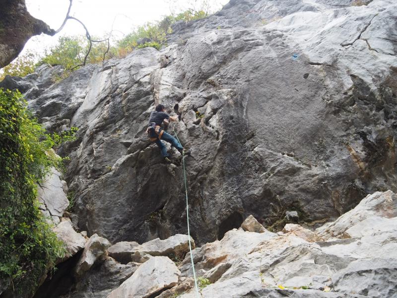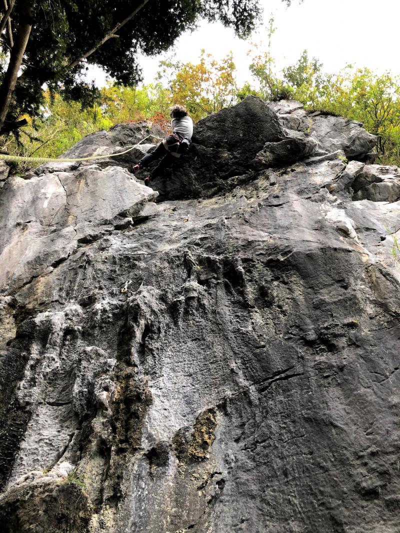 全国的に雨予報だったが、この岩場は雨に強いということで来てみると、小雨でも十分登れた。