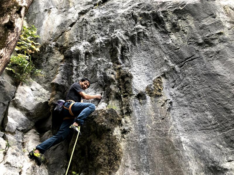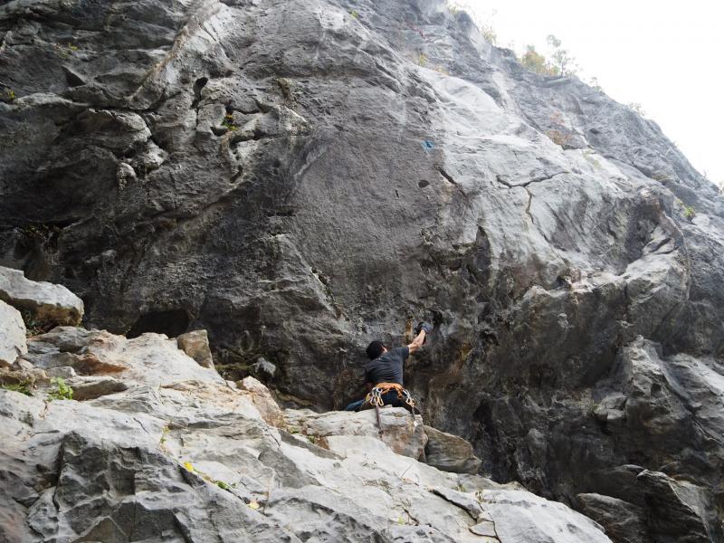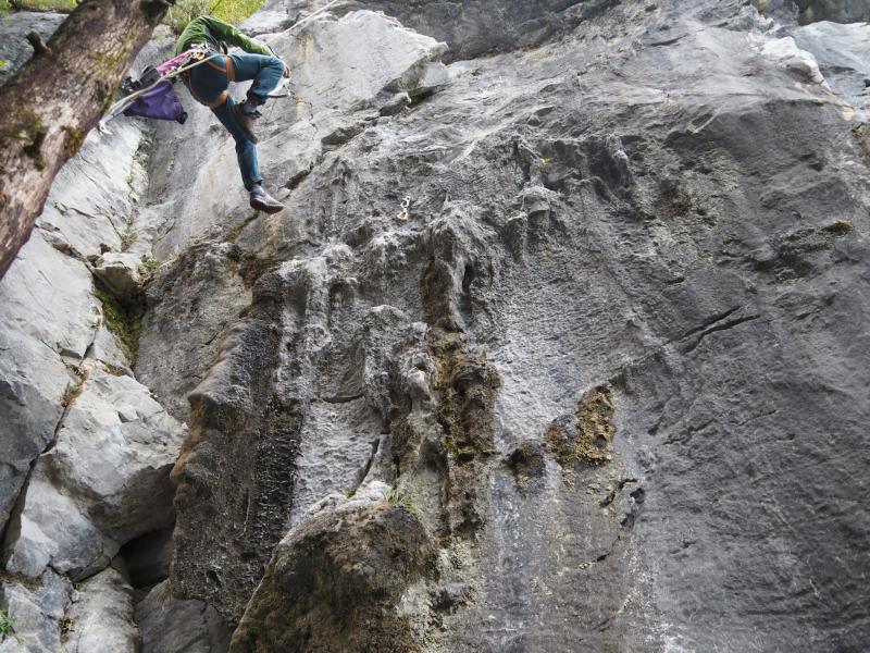 「仙人掌」は1ピン目が高い。必死でヌンチャクをかけクリップしたが、その後のボルトが錆びてグラグラするので、どうしてもその先へ進めず敗退した。