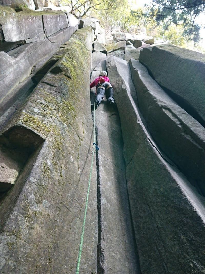アップで「Crack Baby 5.7」 トップロープでしか登ったことが無かったので無事レッドポイントとなりました。