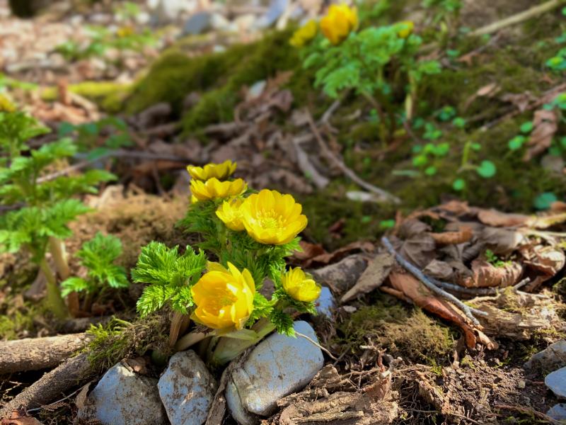 その中でも比較的登りやすく、鉄道駅からのアプローチの良い山です。山頂からは伊勢平野、伊勢湾、木曽三川の大パノラマを望めることから人気の山です!雪解けとともに咲き始める福寿草は美しい金色の花で、幸福(福)と長寿(寿)を呼ぶ花として知られています。この山の特徴である石灰岩、残雪(残雪は残っていない可能性もございます)と高山植物のコントラスを楽しみながら登りましょう