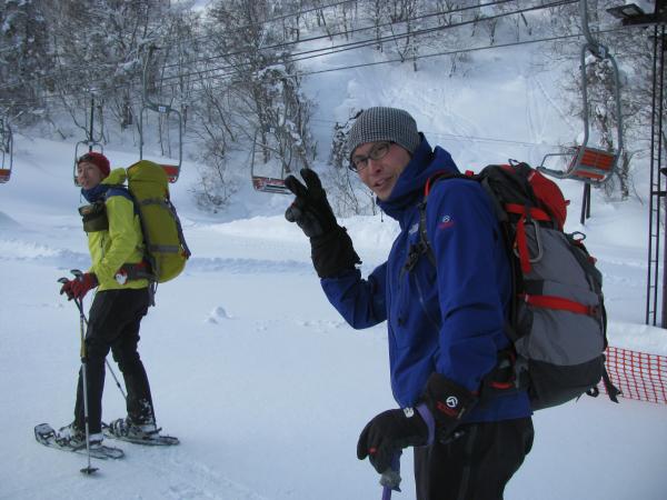 裏磐梯 スノーシューでイエローフォールを見に行く