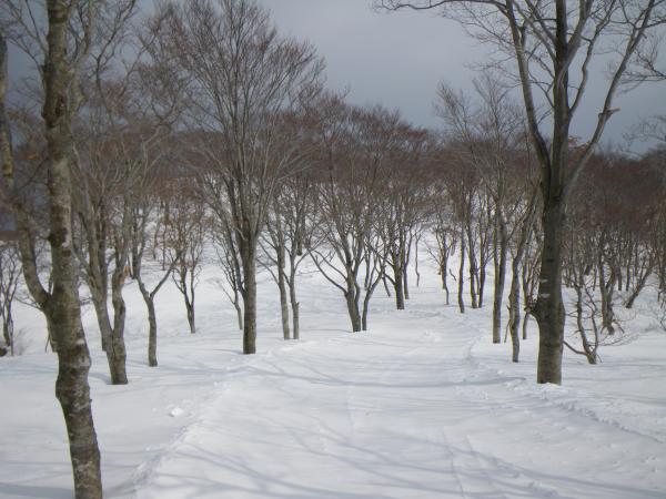 ⑨ゲレンデトップから品又峠手前まではスキー場内のブルドーザー道が続き、歩きやすい