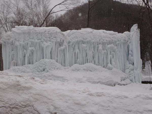 岐阜県高山市清見町に人工的に造られた高さ約25Mのアイスクライミングのゲレンデは名古屋より約2時間、東海北陸自動車道、ひだ清見インターより約7〜8分、彦谷の里に自然の形で造られ、さらに駐車場より徒歩1分と抜群のアクセスを誇ります。今シーズンはプレオープンですが、来シーズンには更にパワーアップを図る予定だそうです。