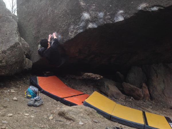 親指君は、地元クライマーとのセッションでマットが多く集まり、非常に安全な状態になりました。