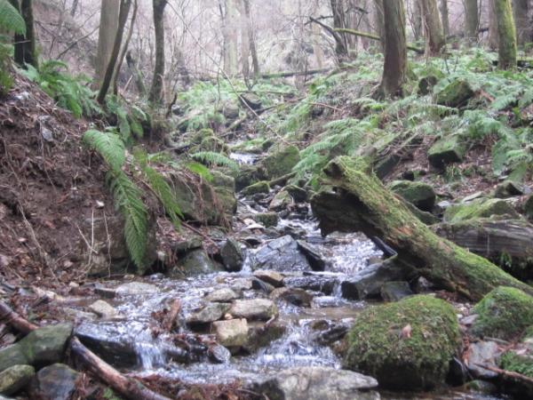 - キトク橋をスタートし、アンノ滝経由で山頂へ。途中沢を渡渉する箇所がいくつか出てきます。昨夜の雨で登山道は滑りやすく状態でした。山頂からの下りは、三瀬峠方面からすぐに左に折れ、水無登山口へのルートを進みました。谷までの途中の急な下りは、木の根が露出した滑りやすい要注意区間です。また、アンノ滝までの斜面のトラバース区間も道幅が狭く慎重に歩きました。