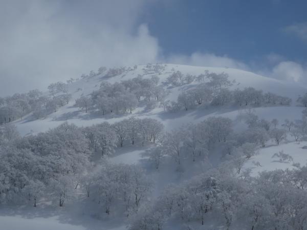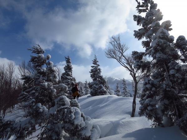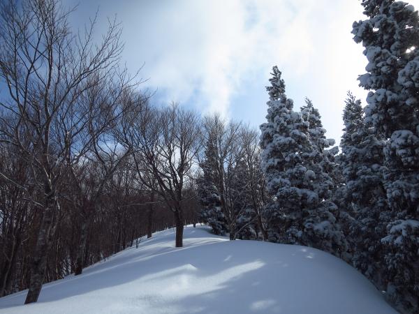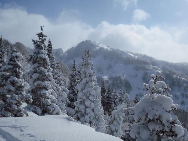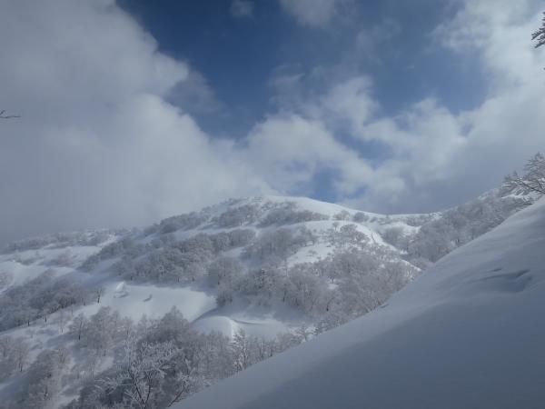 天候は予想に反して穏やかで時折青空が覗く山スキー日和。