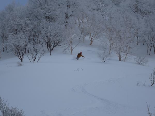 雪質は標高と共に、パウダー(軽)、並、重、と変化。