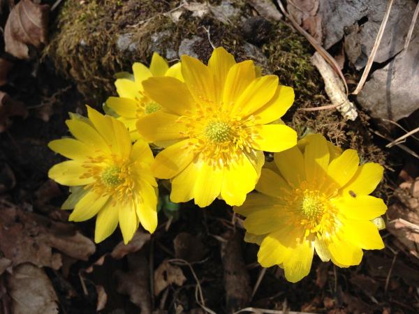 福寿草の群生はこれからでした。3月17日現在は咲き始めぐらい。