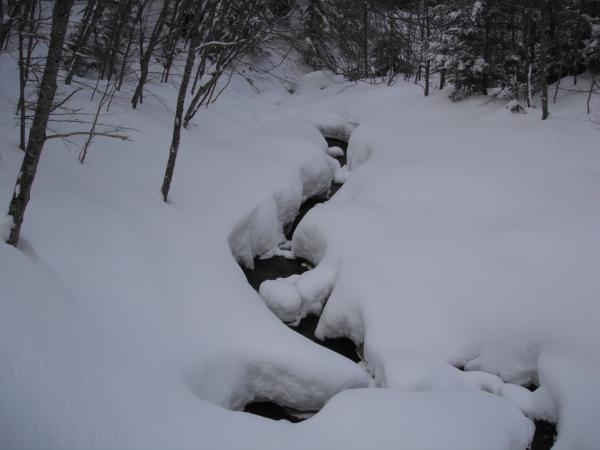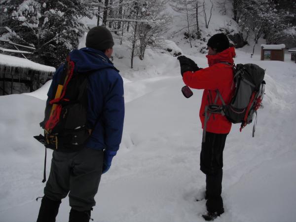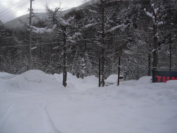 - 積雪は深いところで膝くらいです。