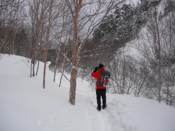 天候が悪く、前日から雪だったため、稜線ではホワイトアウトで1メートル先が見えず-15℃という気温で顔が凍傷になりそうな程の悪条件でした。