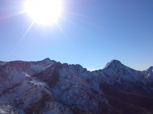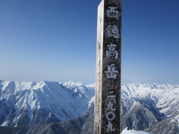 冬の西穂高岳は、はじめての登頂だったのでとっても感動しました。富士山まで見えるという快晴もあり見晴らしは最高でした。