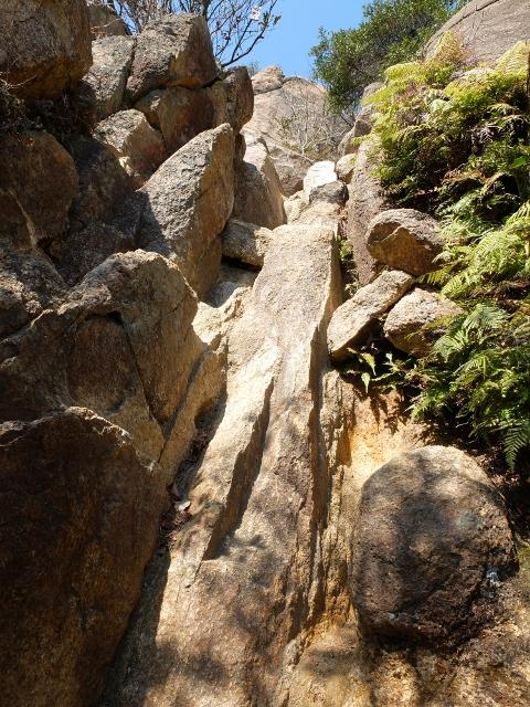 小春日和の中、岩場を越えるたびにふりかえると海がみえ、気持ちの良いハイキングが楽しめるおススメのコースです。名物の岩梯子も足場はしかりとありますので、三点支持で落ち着いて登ればけっして難しくはありません。