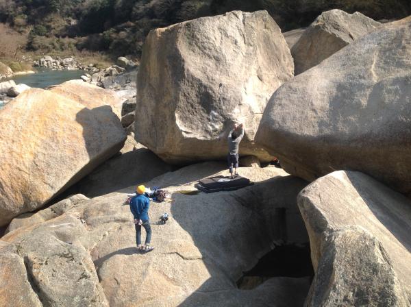太陽光を浴び、温まった岩のフリクションは、冬に比べ少し悪いですが、風が吹けばフリクションは戻り、まだまだ課題にチャレンジできる季節です。これからの季節は、午前は上流エリア、夕刻は下流エリアのほうが、フリクションは期待できるかと思います。
