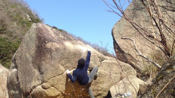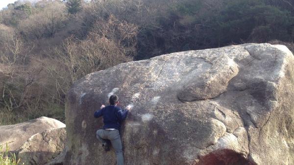 小春日和の笠置でボルダリング