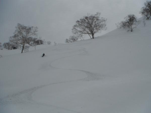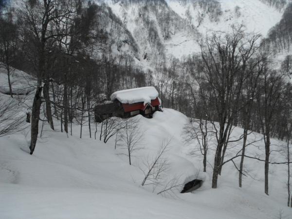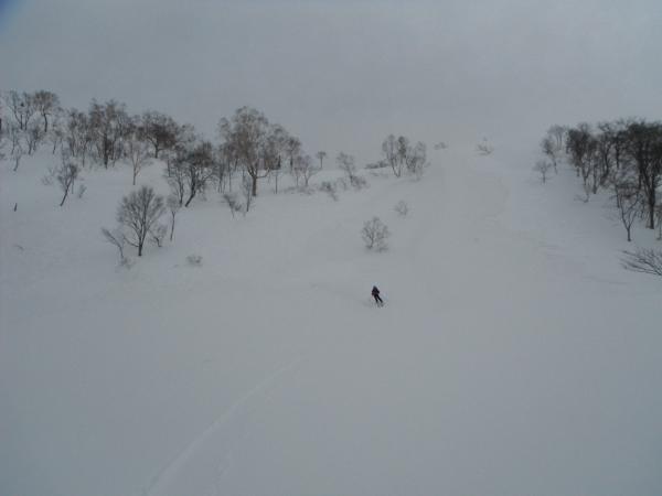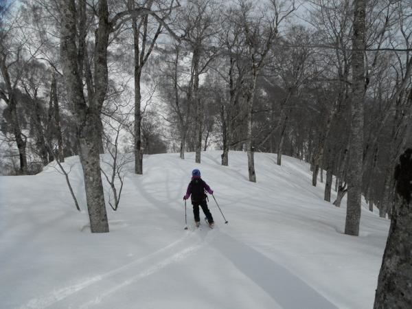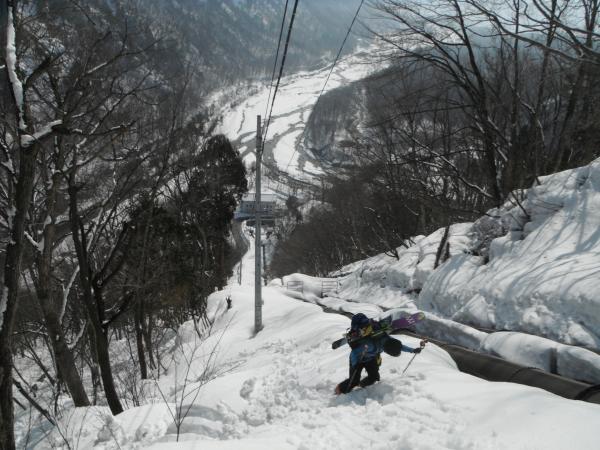 そのあとは長ーい林道滑り。腐り雪で板が走らず、二の腕がパンプアップしました。
