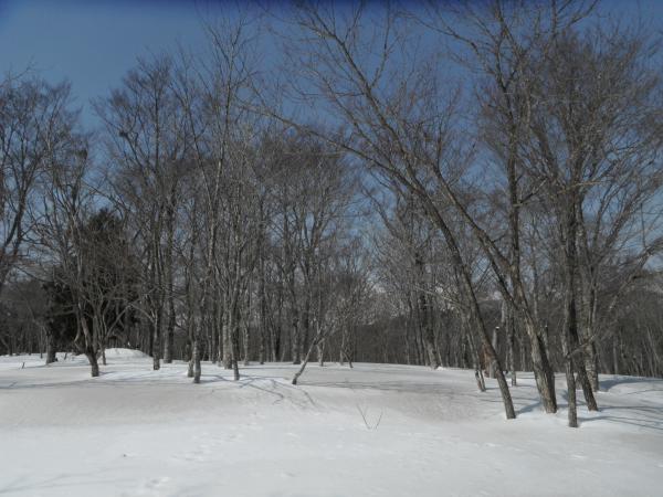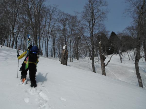今回はいずれの林道歩きも億劫だったので、二股から1244m台地まで直登しました。トレースはもちろんなく、1400m付近まではつぼ足膝ラッセルで疲れました。1508mコルを少し過ぎたところからシール歩行に切り替えました。