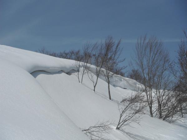 - 北東斜面にてサイズ2程度の面発生雪崩が発生している注意すべきコンディション。
