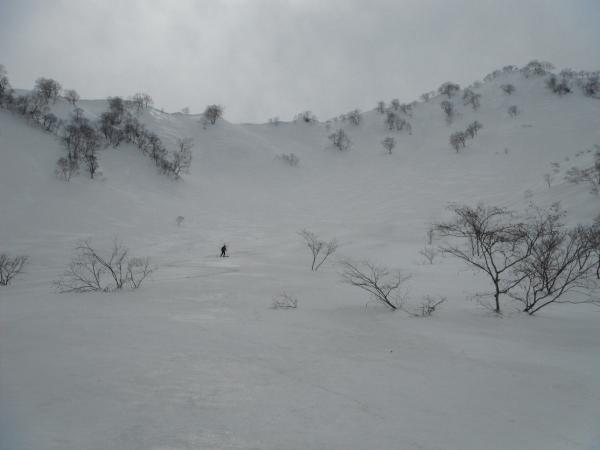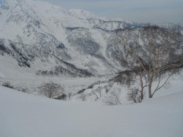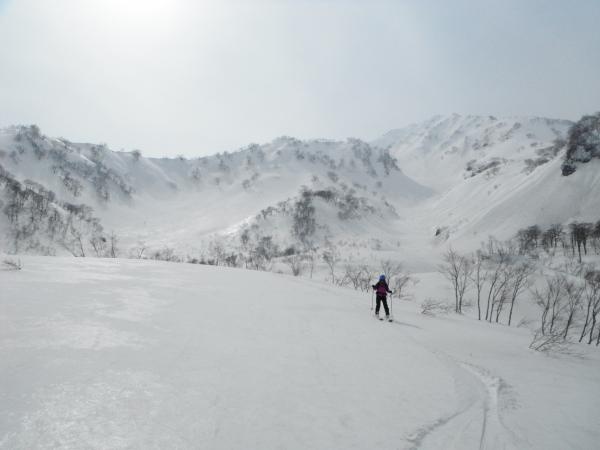 今回は雪質に不安があったので沢筋よりも尾根筋を優先して滑りました。基本的には小日向のコルから夏道沿いに滑り、猿倉荘に至りました。