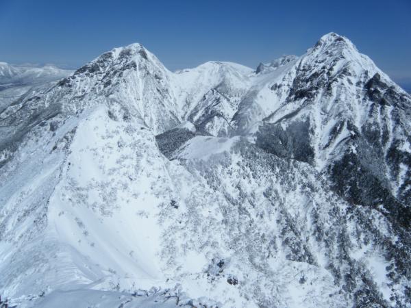 赤岳への登りは遠くから見ると威厳のある姿で出迎えられます。まさに雪と岩の鎧をまとうような様子です。剱岳ではありませんが、「あれどこから取り付くのか?」一見すると分からないのですが一歩一歩近づけば難解なパズルが解けるようでした。