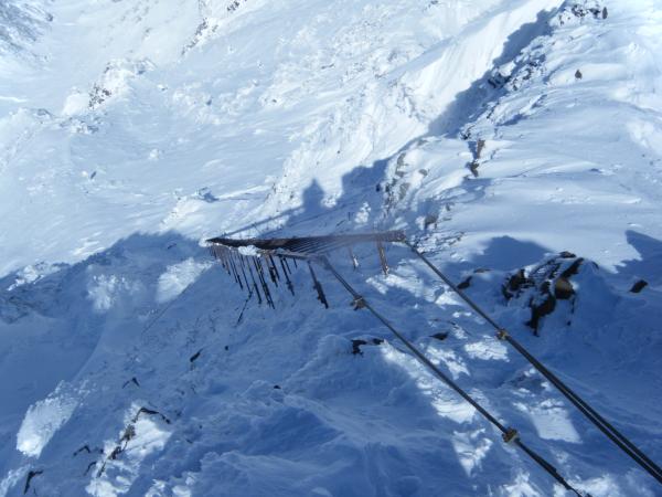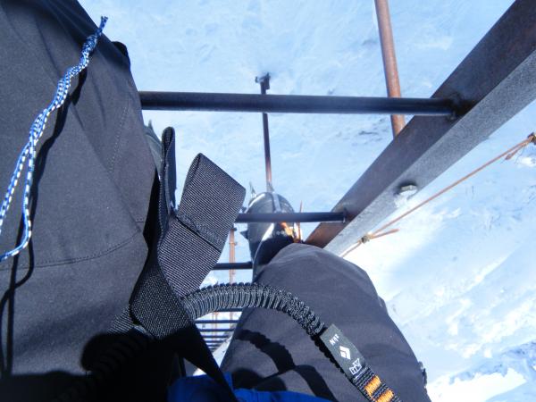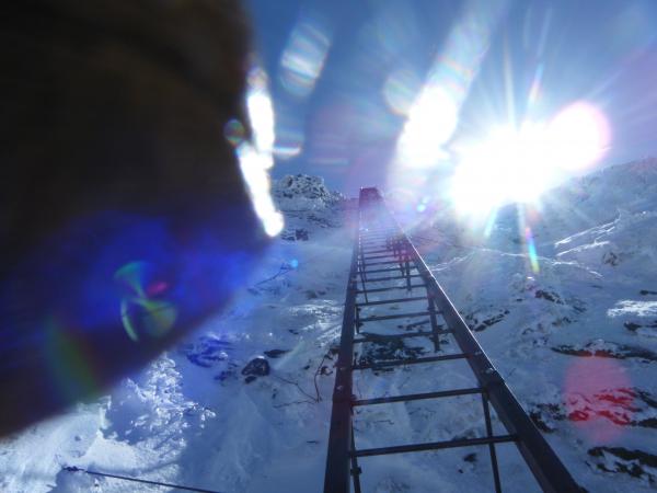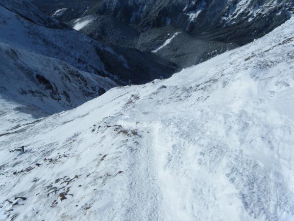 権現梯子の下降直後かなり急な斜面をトラバースしますので数名で行かれる場合はザイルがあると安心です。感覚的には雪崩れても不思議ではない箇所でした。