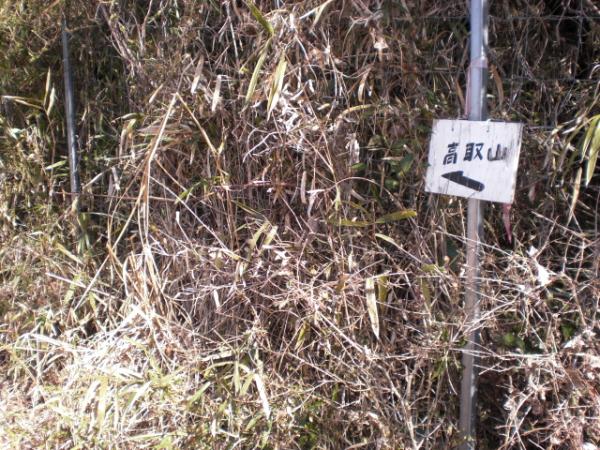 登山道に入り、すぐ左に小さな「高取山へ」の看板があります。