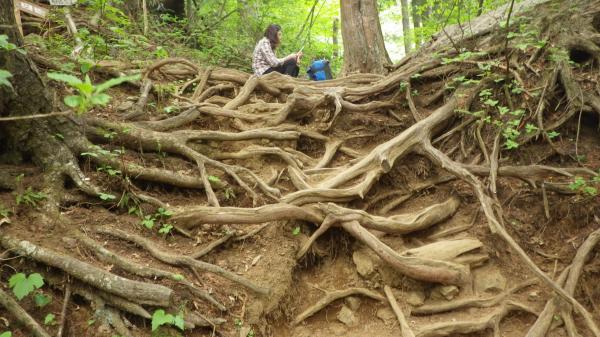 この階段辺りにシロヤシオが沢山咲いていて、階段にはらはら落ちている花びらがとてもキレイでした。