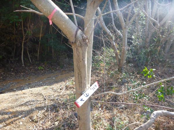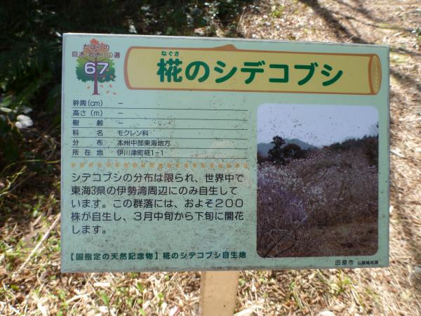 - 小さな道標とピンクテープを頼りに歩きました。とくに迷いやすい箇所は、なかったと思います。登山口は、トンネル手前の空き地に入ってすぐ左側に小さい道標があります。なぐさのシデコブシの駐車場は、非舗装の自生地の入り口の右側でした。