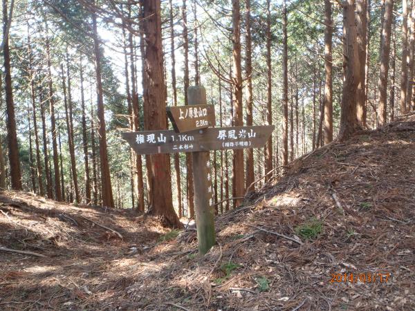 - 細川橋(70)~二本杉峠(70)~屏風岩山(15)~東峰(屏風岩山南東尾根)(50)~細川橋
