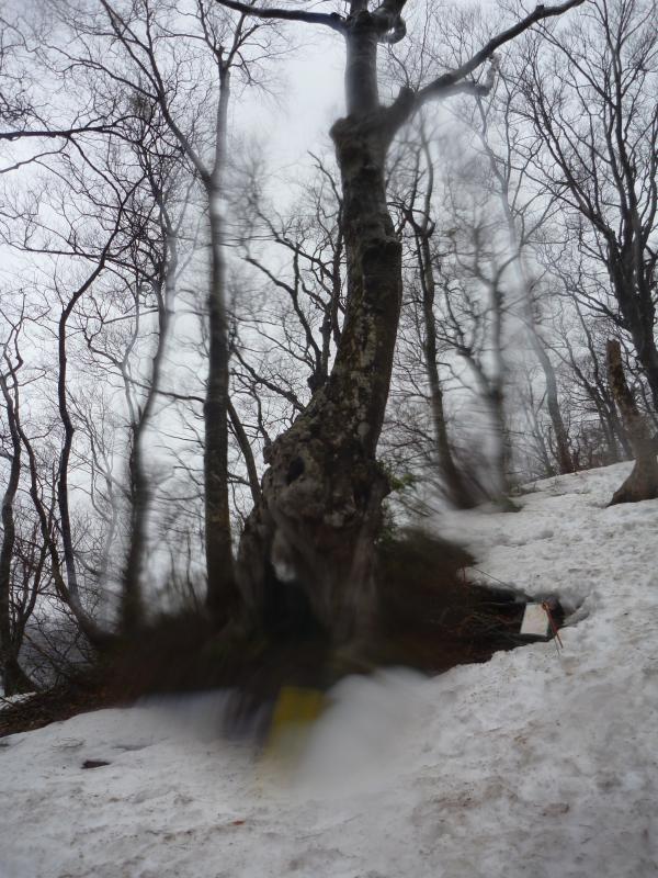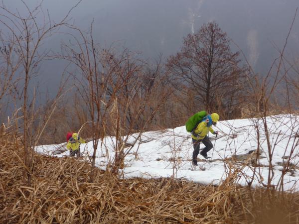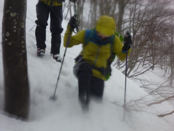 シャクナゲ平までは雪もグサグサの状態で、ツボ足では踏み抜く事も多くありました。