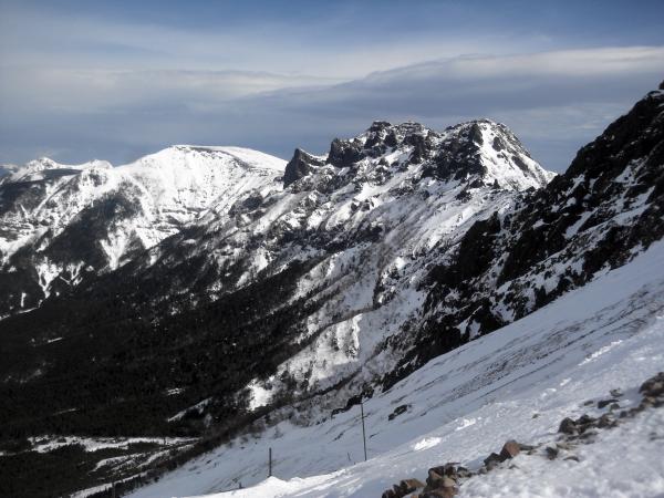 稜線上は岩と雪のミックスですので、支点をしっかり取り、アイゼンの引っ掛けや転滑落に注意。