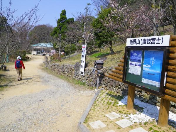 - 野外活動センターP>18分>三合目(直登コースへ)>46分>飯野山山頂>44分>三合目>12分>野外活動センターP