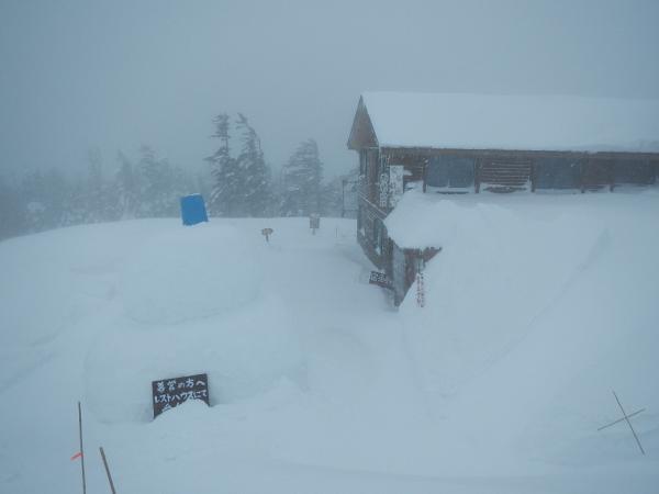 初日はロープウェイ駅から雪が降っており、低気圧の接近・通過と共に天候は下り坂。
