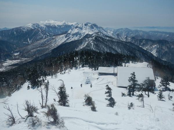 振り返れば焼岳に乗鞍岳。その西奥には白山がやけに近く感じます。