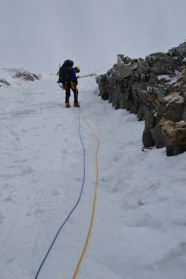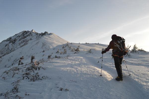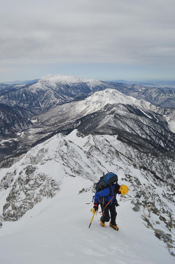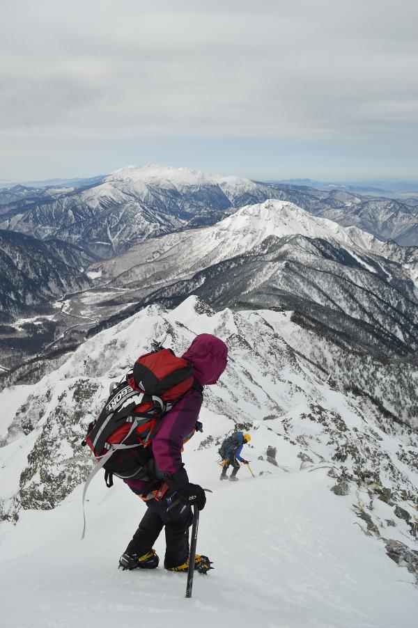 登りも厳しいですが、山頂直下の下りはかなり危険です。確実なアイゼンワークを心掛け、危ないようならロープを出しましょう。