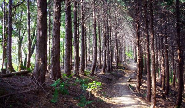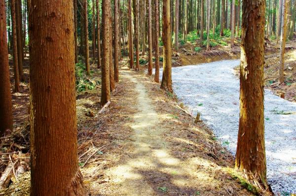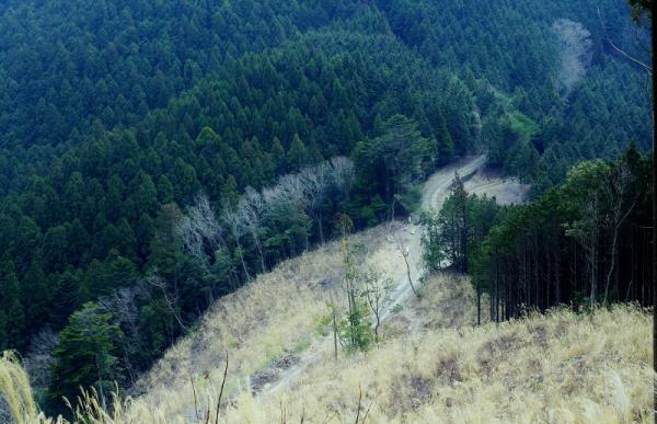 途中林道と登山道が並行していますが、10分程歩くと登山道が林道に収束して馬王平に繋がります。
