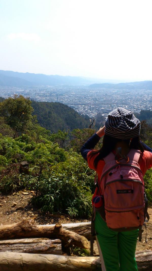 ところどころ展望がひらけているところで、双眼鏡をのぞいたり写真を撮ったりしながら、楽しく歩けるコースでした。京都一周トレイルの道標のナンバーが子供にはいい励みになったようです。