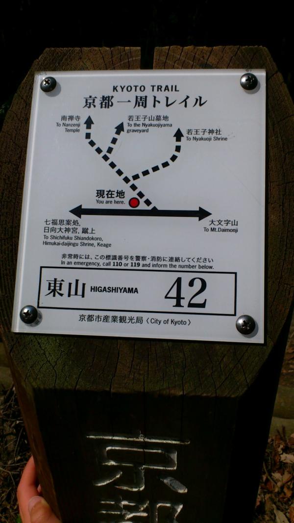 多少脇道があるように感じましたが、京都一周トレイル東山コースの道標があり、ルートはわかりやすいです。