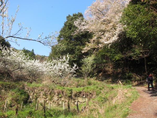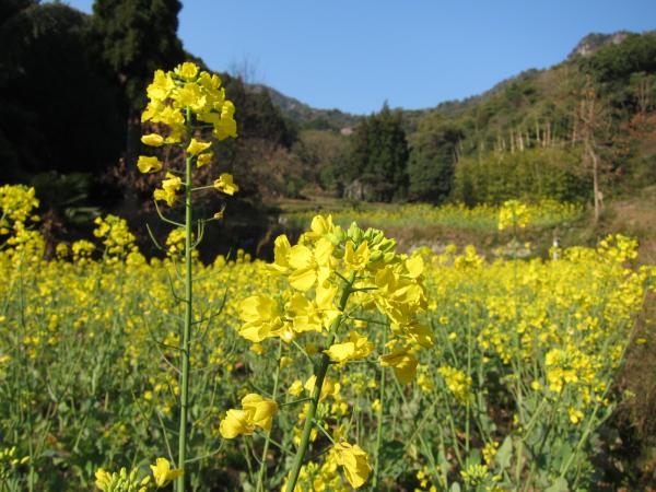 登山口のある集落では猫に癒され、菜の花や桜の景色と香りに癒されます。