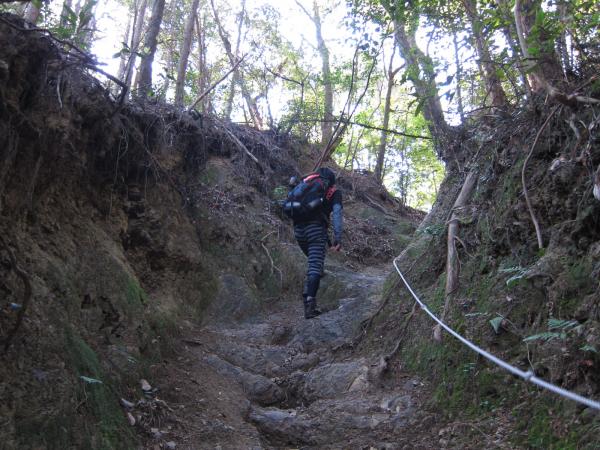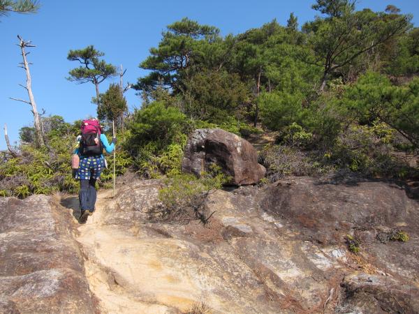 コースは岩場混じりで、所々巨石をよじ登ります。次郎丸岳付近は急登となっています。