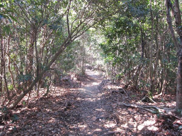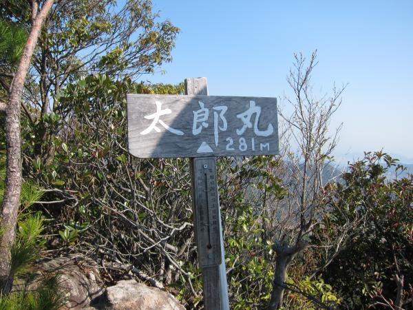 - 登山口[0m]→(40分)→遠見平→(2分)→太郎丸分岐→(30分)→太郎丸岳[281m]→(20分)→太郎丸分岐→(30分)→次郎丸岳[397.1m]→(25分)→太郎丸分岐→(35分)→登山口[0m]
