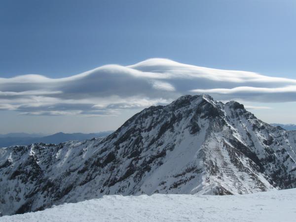 翌日は夜中から強まった風が吹き続けていて、テントから出てみると空の至る所にレンズ雲が浮かんでいました。