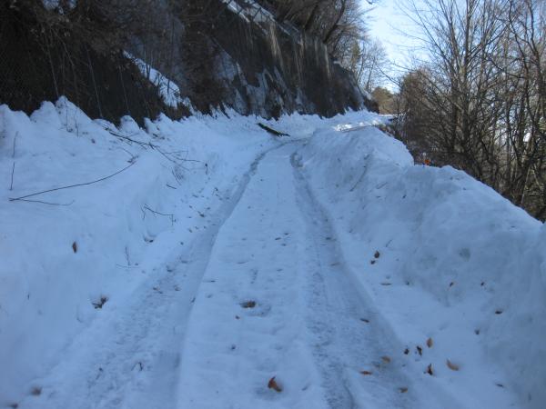 行程の約5割は積雪があります。雪解けが中途半端なため、かなり手こずります。