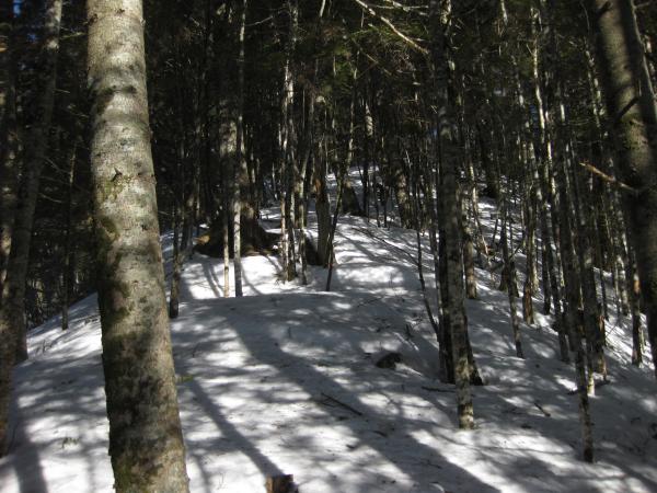 豊口山間のコルから先、北斜面のトラバース道は完全に雪に埋もれていました。