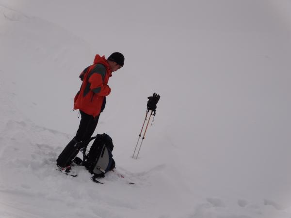 朝から少し吹雪いていたため、山行を決行するか否か迷う。
