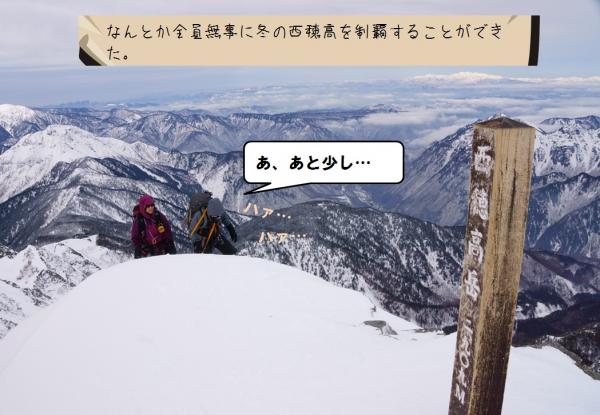 最初はテント泊の予定だったのですが、初日の悪天候のため小屋泊まりに変更しました。西穂山荘は思った以上にきれいで温かく、夜中でも寒さを感じることはありませんでした。冬山登山には非常に心強い山小屋です。