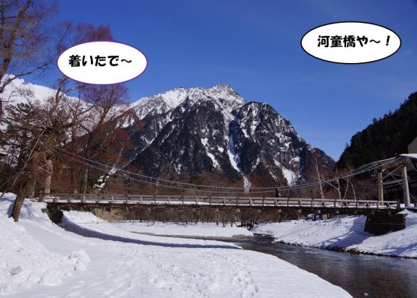 - 坂巻温泉(25分)中ノ湯(25分)釜トンネル出口(30分)大正池(90分)河童橋(85分)中ノ湯(20分)坂巻温泉