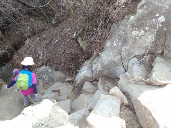 子ども達が春休みと言う事もあり、春の筑波山に行ってきました。前日の雨の影響もなく、春の快適なトレッキングができました。登山道や頂上は人が多く、ゆっくりなペース。登りに御幸ヶ原コース、下りに女体山から白雲橋コースを選択しましたが、登り下りとも意外と急な岩場が多い為、子連れには要注意!山行タイムより余分に時間を取った方がいいです。