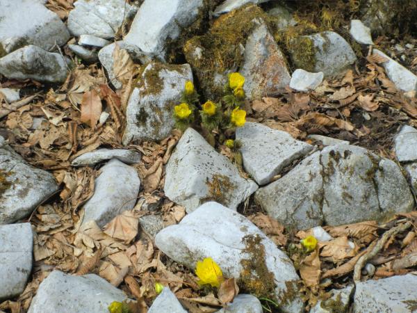 藤原岳と言えば「フクジュソウ」と言う事で春を感じに・・・と参りましたが、前日の雨と気温が上昇したためせっかくの黄色の花が泥道から顔をだしておりました。